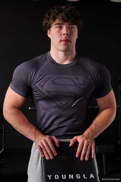 DESIGN: The Superman x YoungLA Compression Tee is one of the standout pieces in the collection. Designed for a sculpted, athletic fit, this tee is built to highlight your physique. Made with premium jacquard patterns and detailed paneling, it delivers both performance and superhero-level style.
