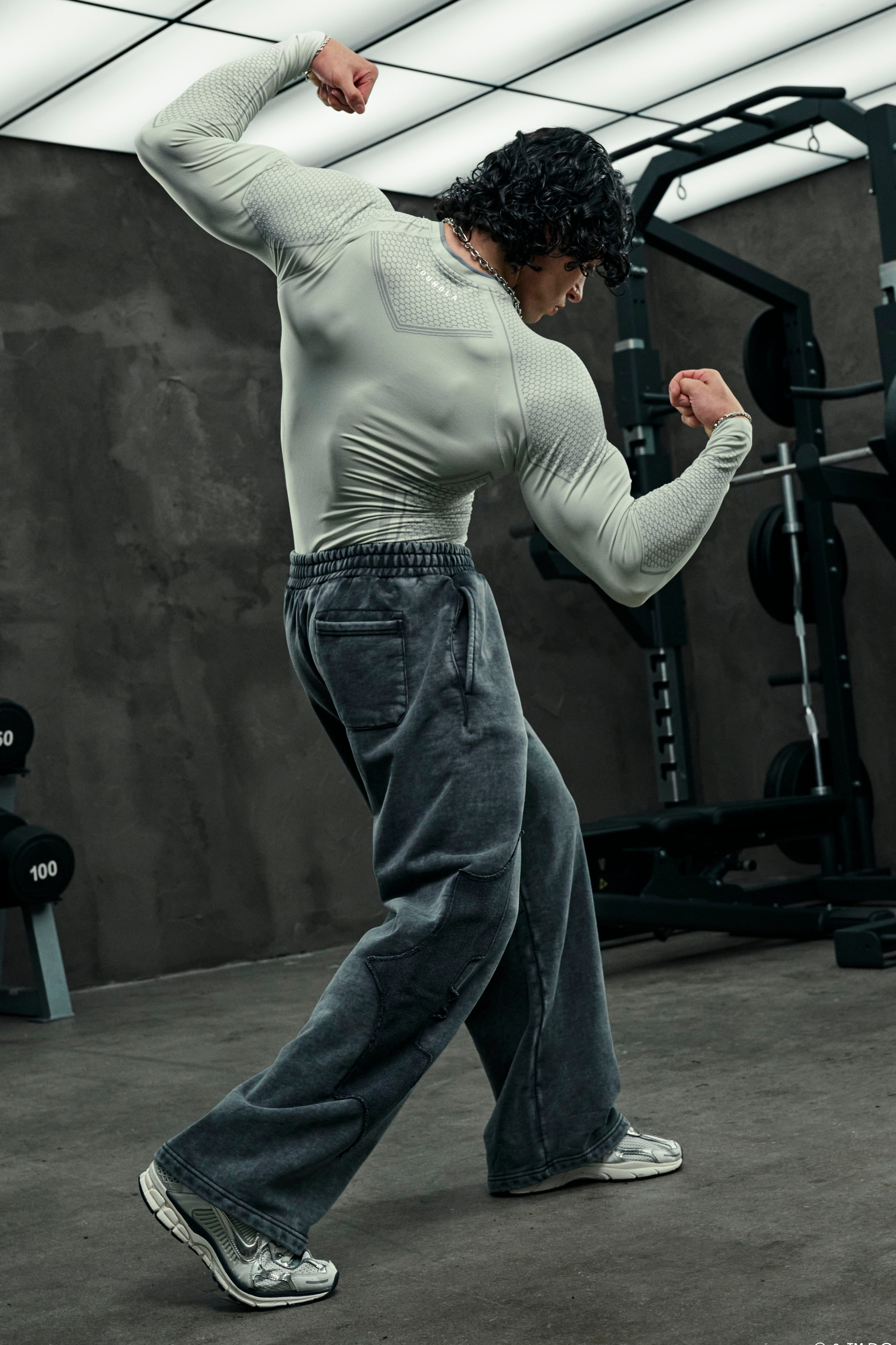 DESIGN: Long-sleeve compression built with a tactical, armored knit pattern for a locked-in feel from chest to wrist. The sleek black body is accented with textured paneling that contours your shape without restricting movement. Finished with a bold Batman emblem front and center. It's lightweight, supportive, and ready for training or layering.