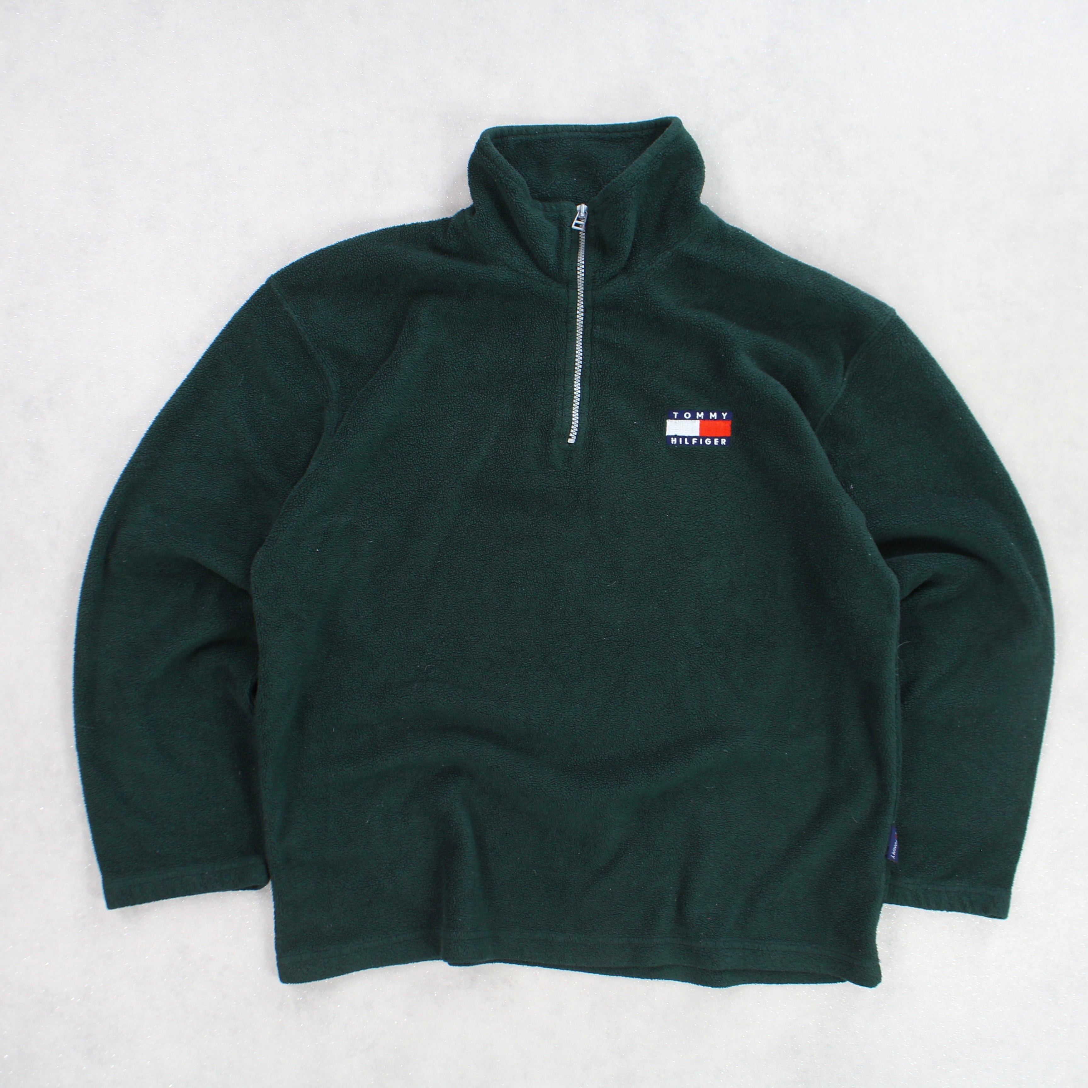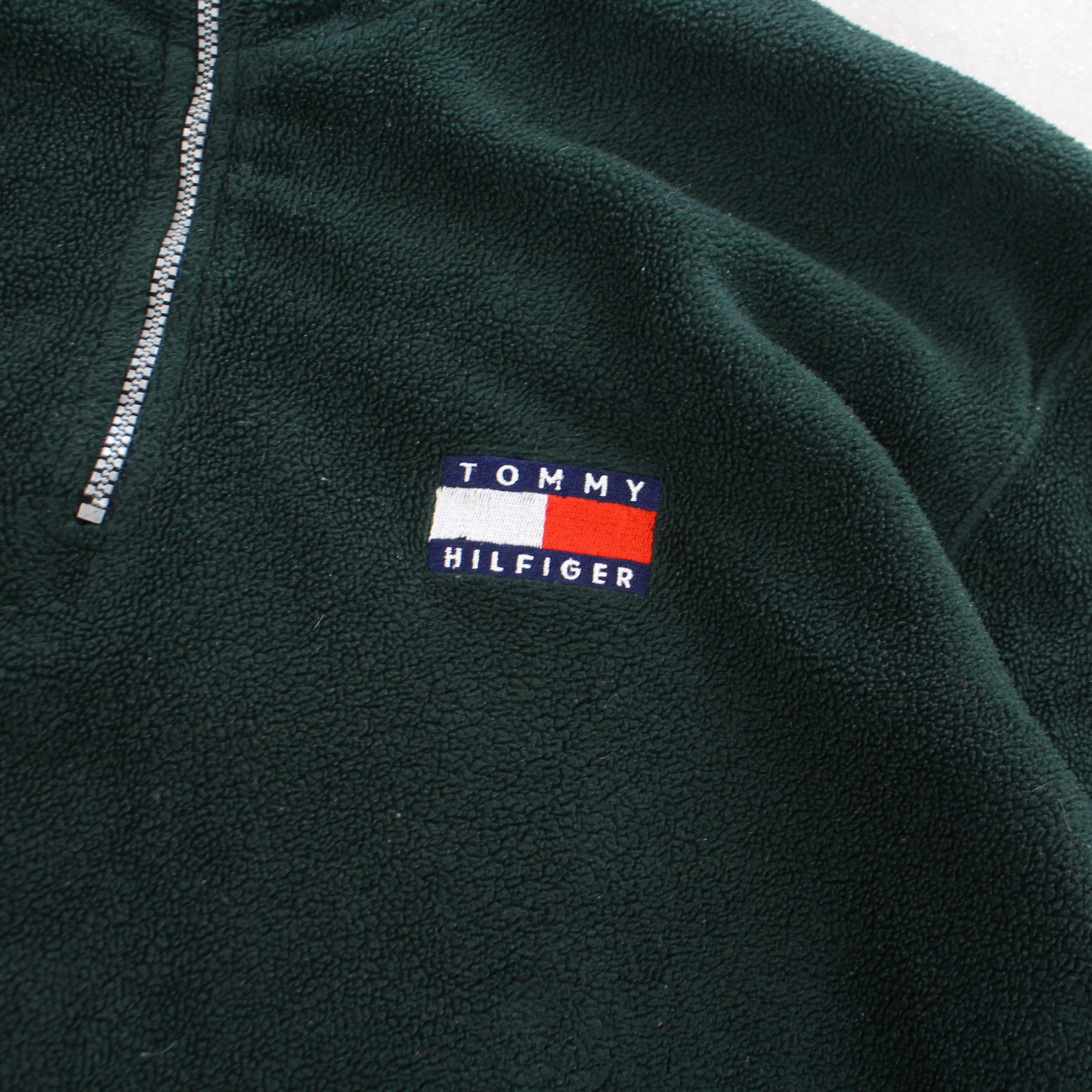 RARE 1990s Tommy Hilfiger 1/4 Zip Fleece Green - (XL)