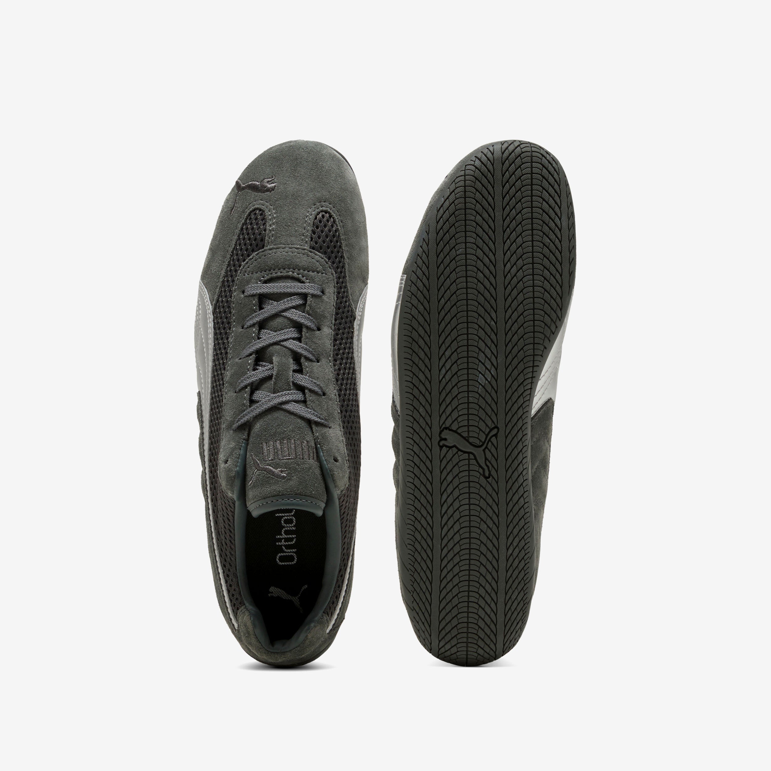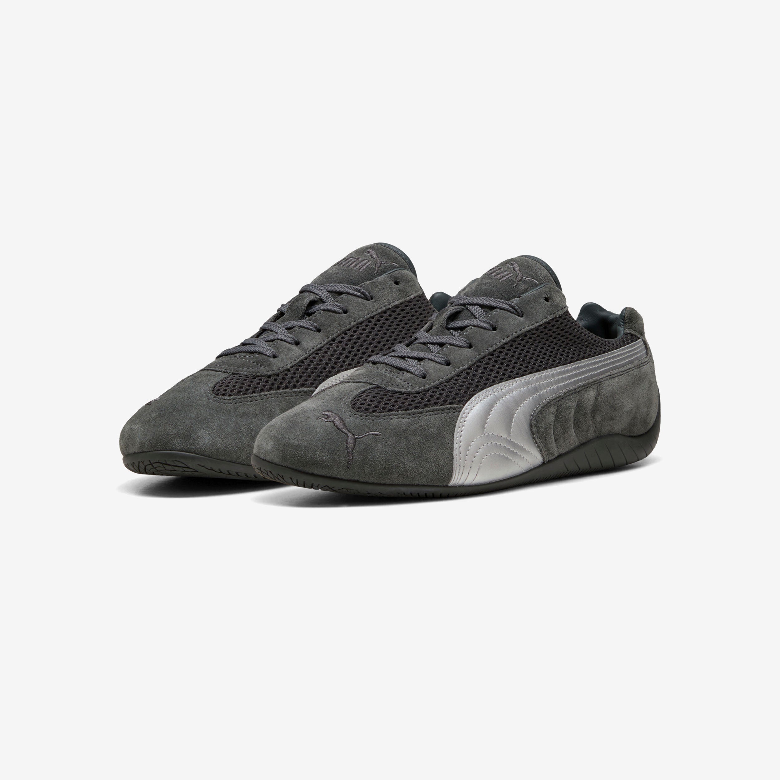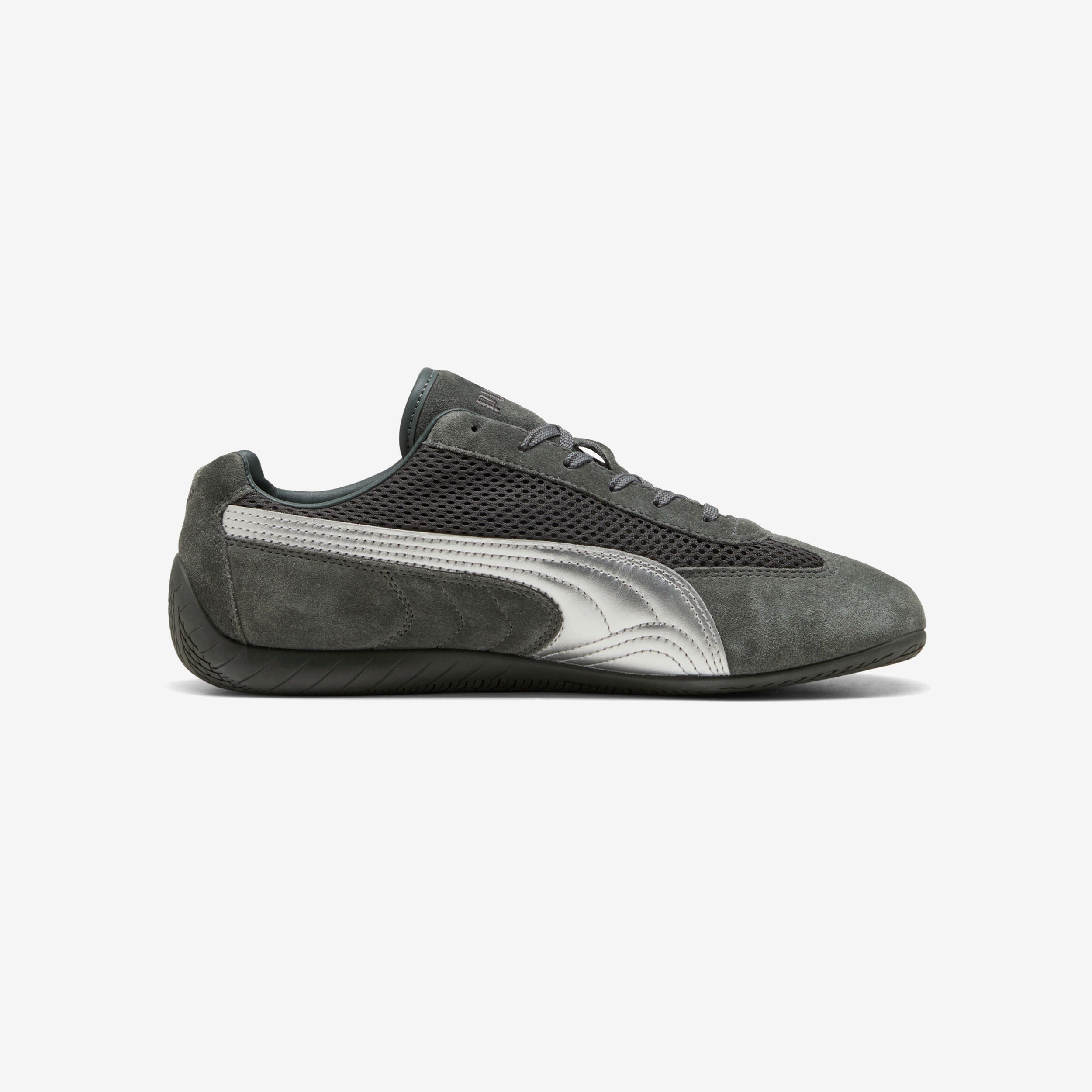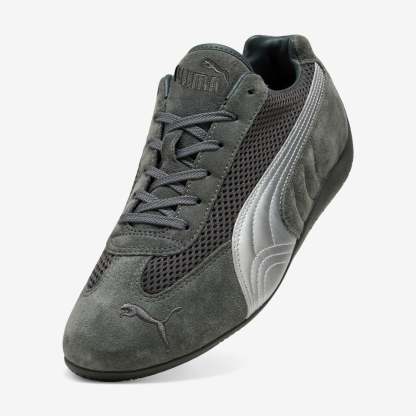 A PUMA icon inspired by the speed of the racetrack takes a premium turn with this brand-new iteration of the cutting-edge Speedcat. With a classic race shoe-inspired shape and sleek lines that look fast and bold, this premium edition of the PUMA Speedcat has a mesh upper and metallic leather PUMA Formstrip down the sides, complemented by signature PUMA branding on the toe, tongue, and heel.