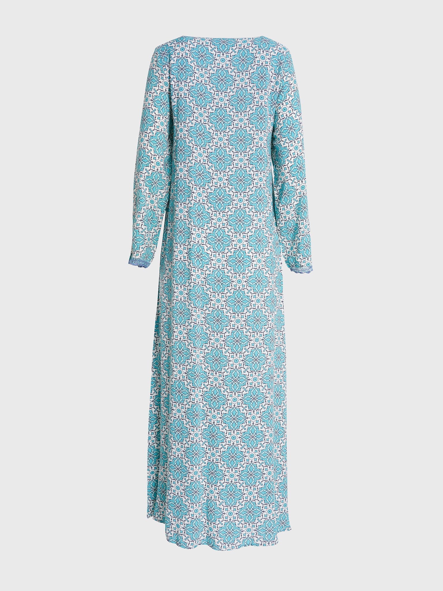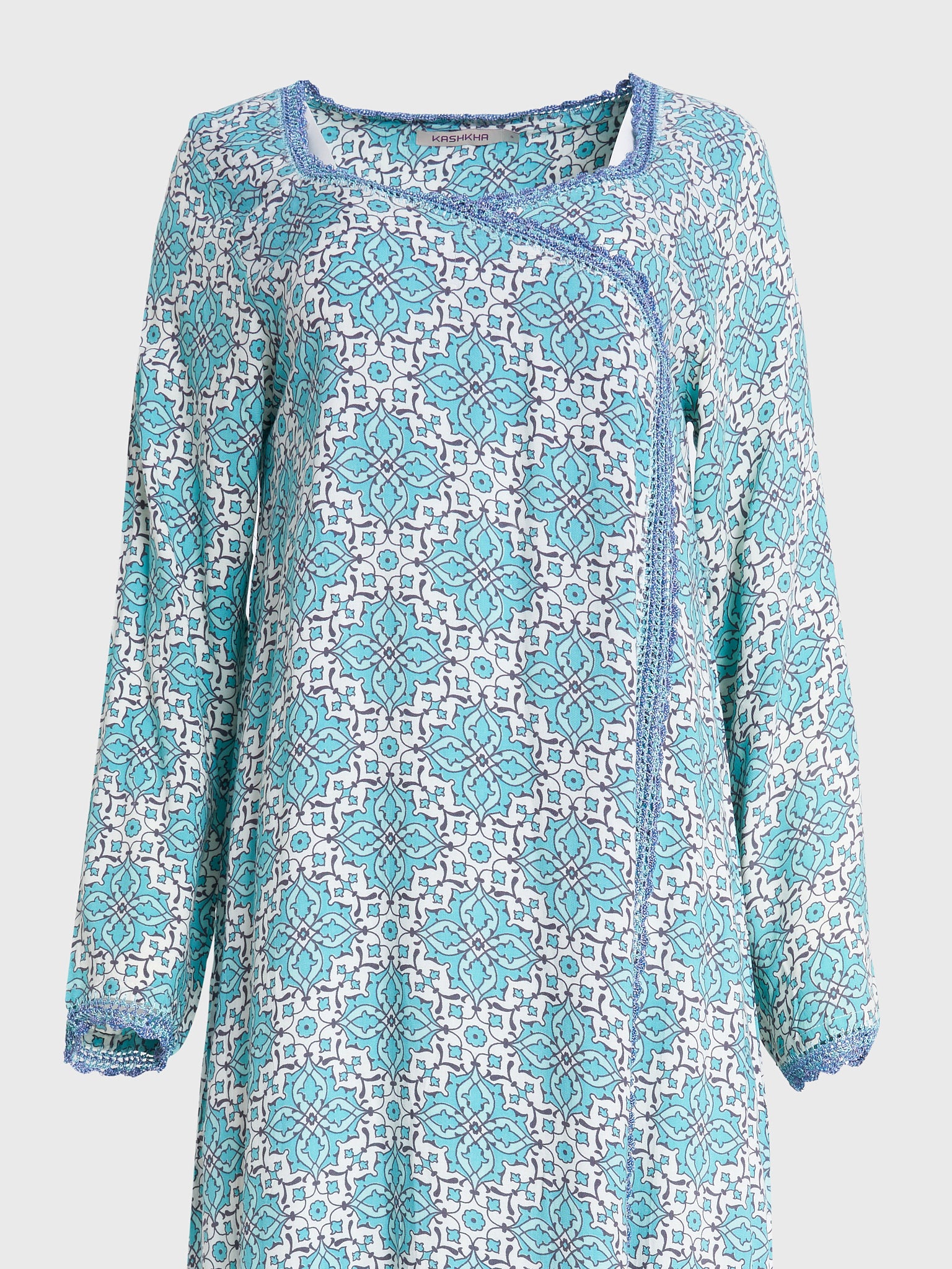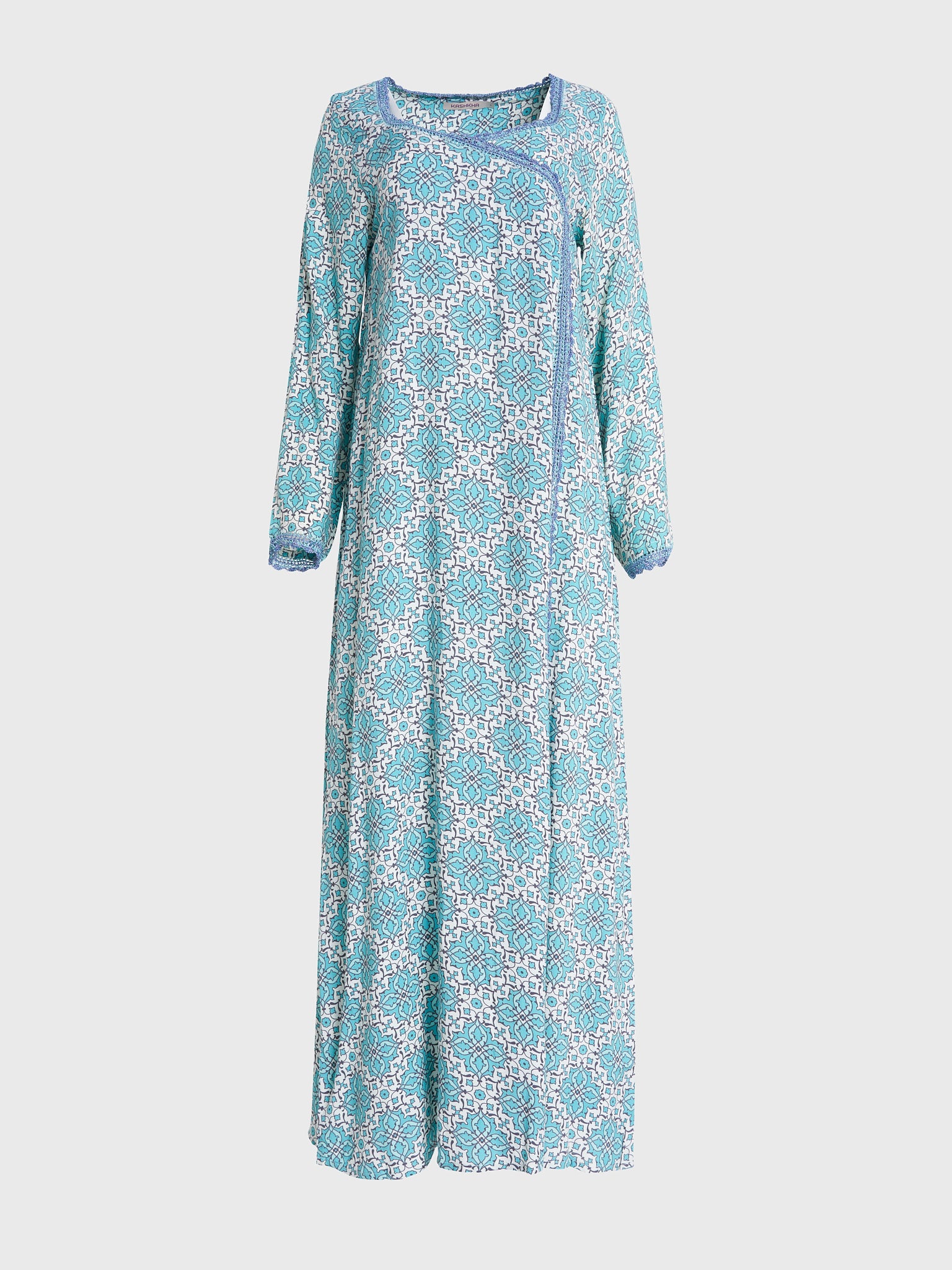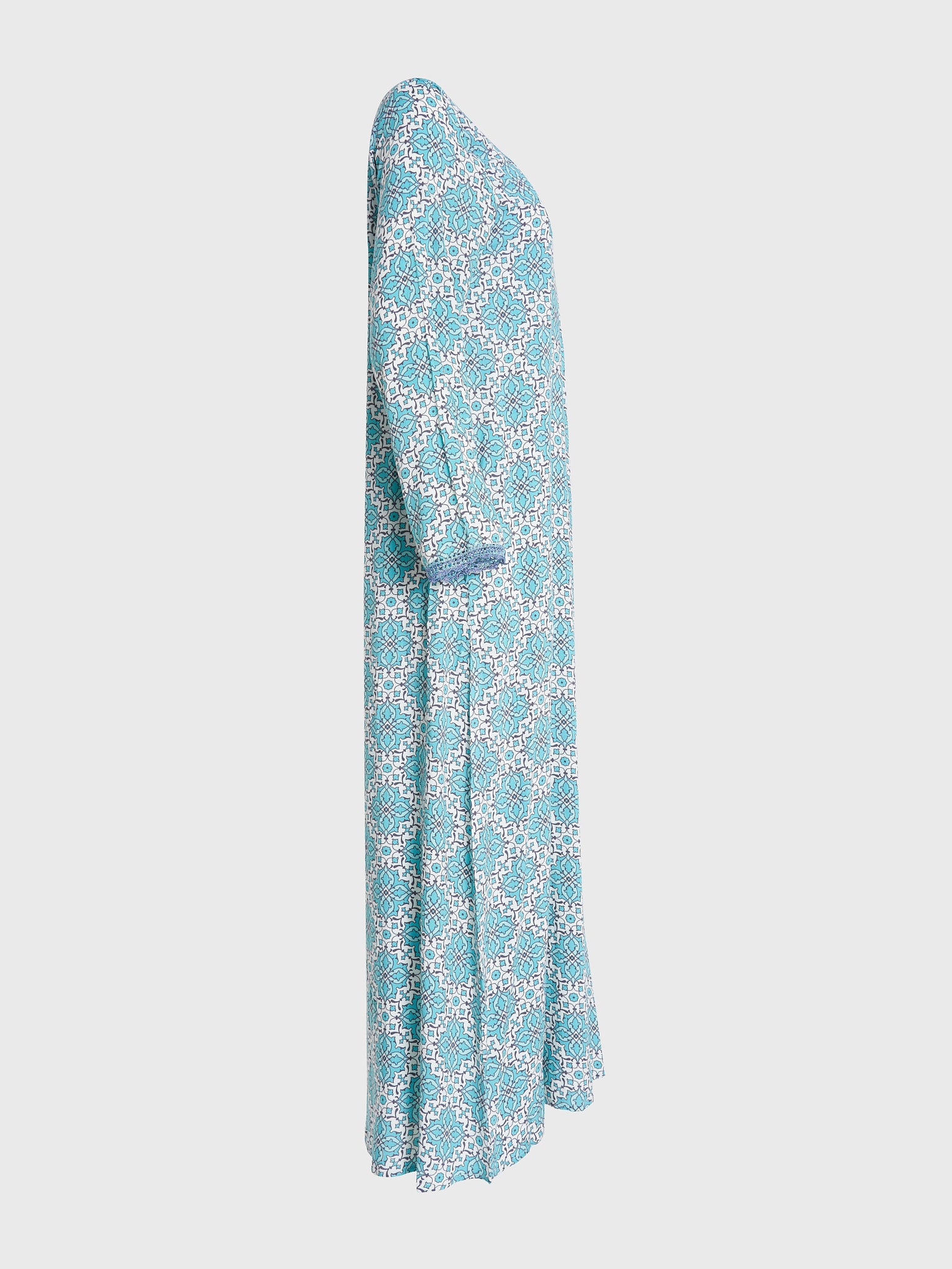 Rayon Jalabiya with Print and Overlap Neck