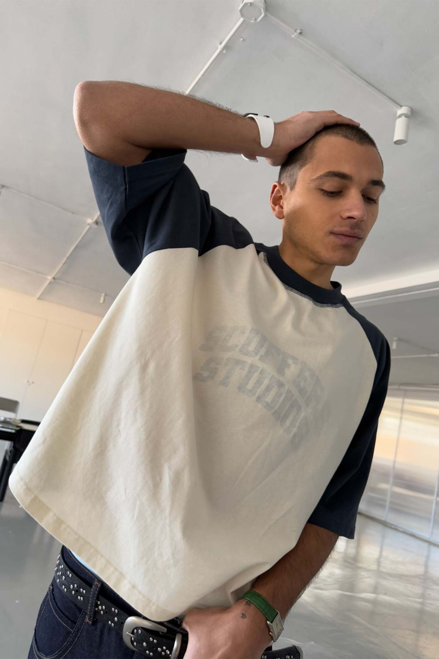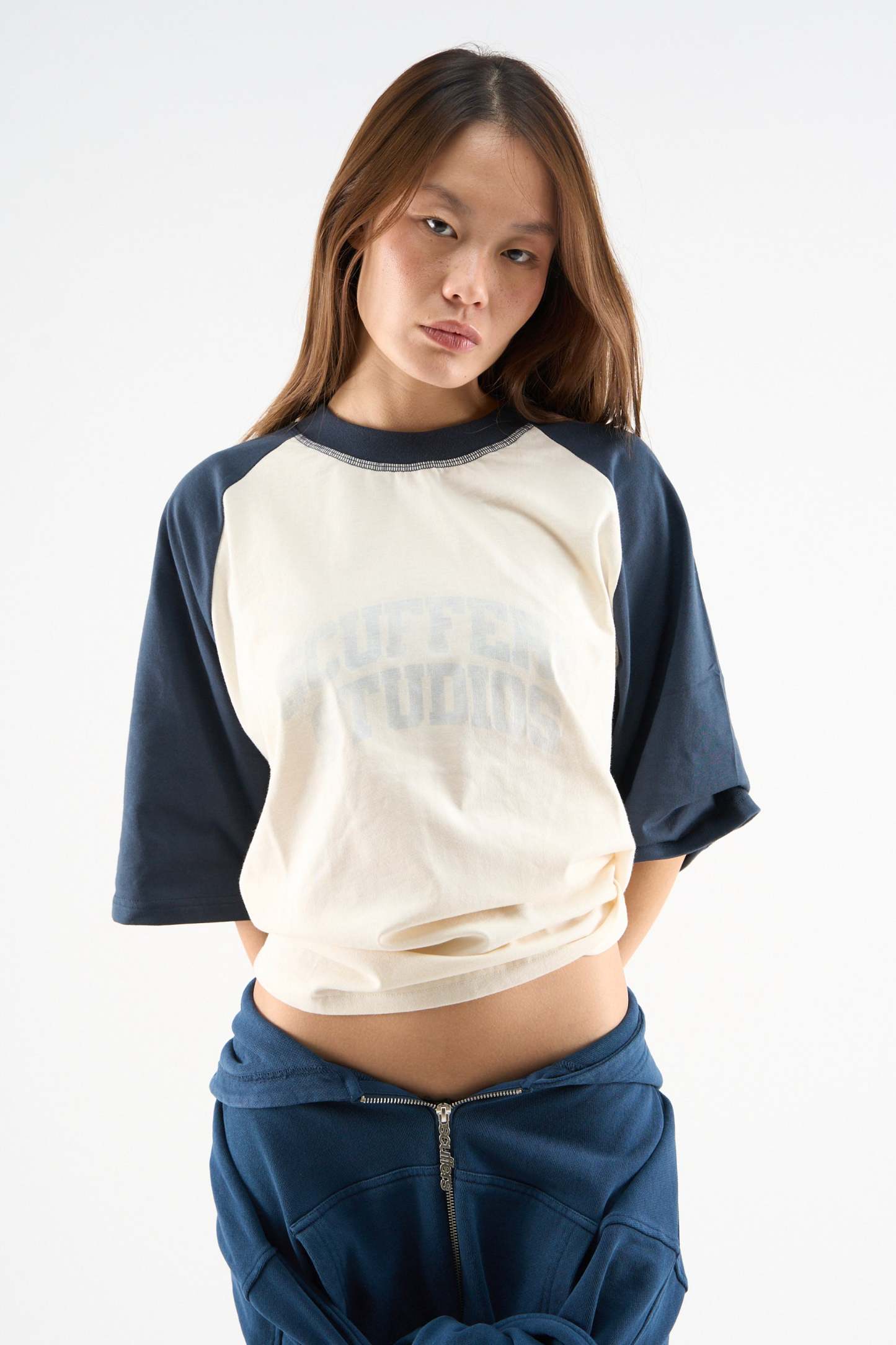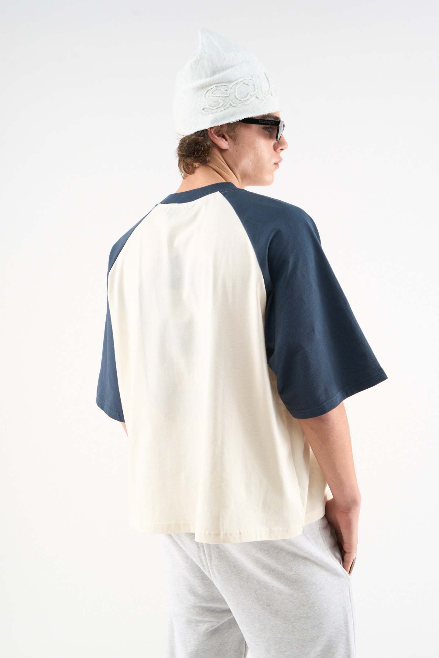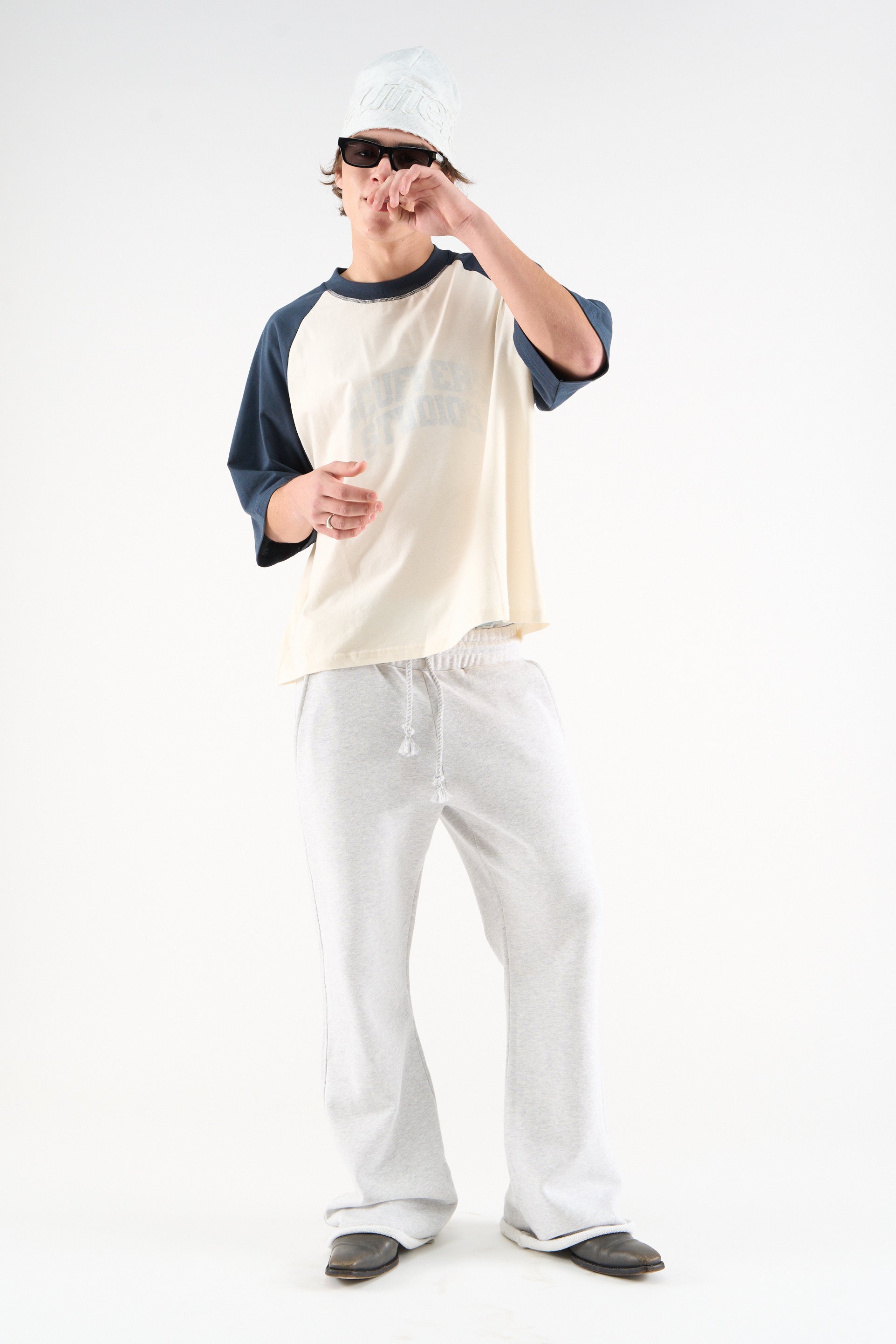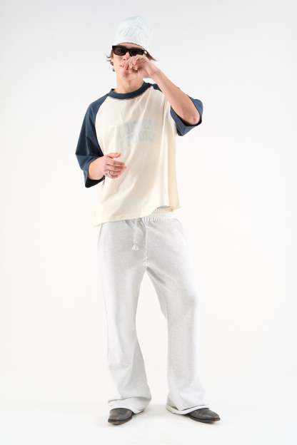 This product features intentional 'ripped' details on waistband, sleeves and neck.