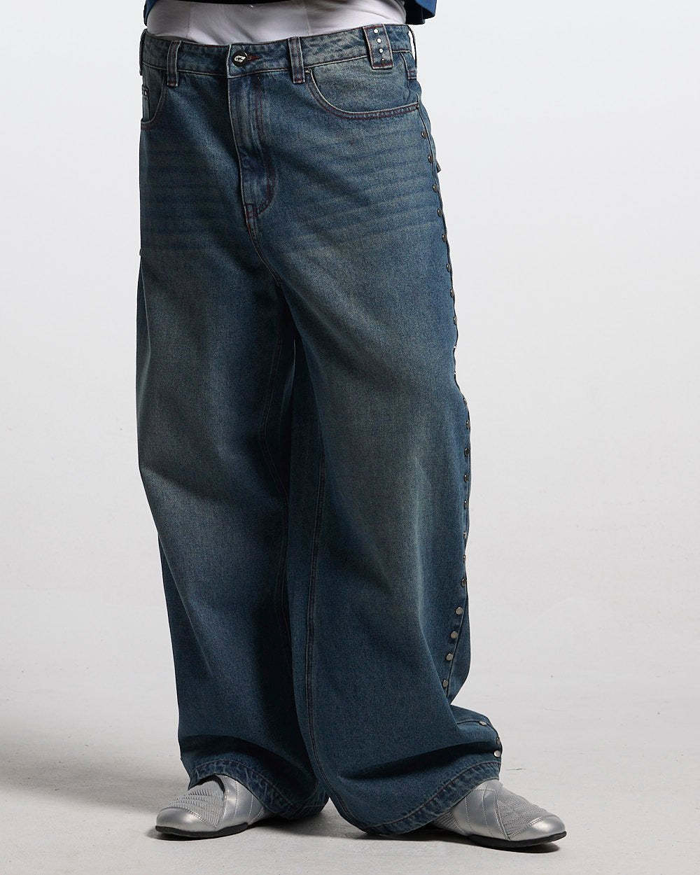 Loose-fitting straight trousers.