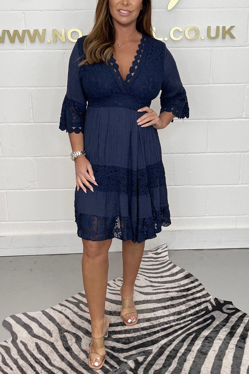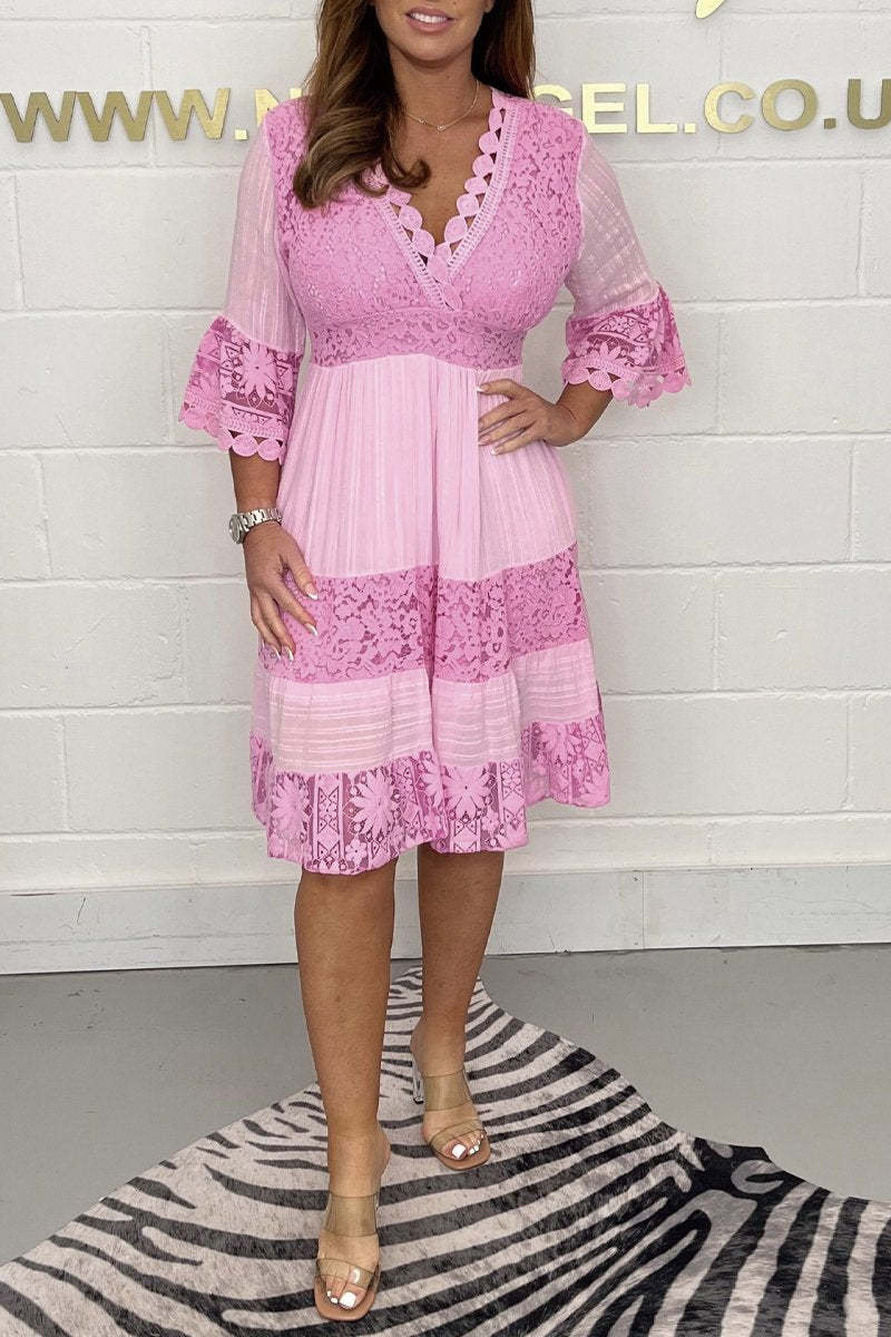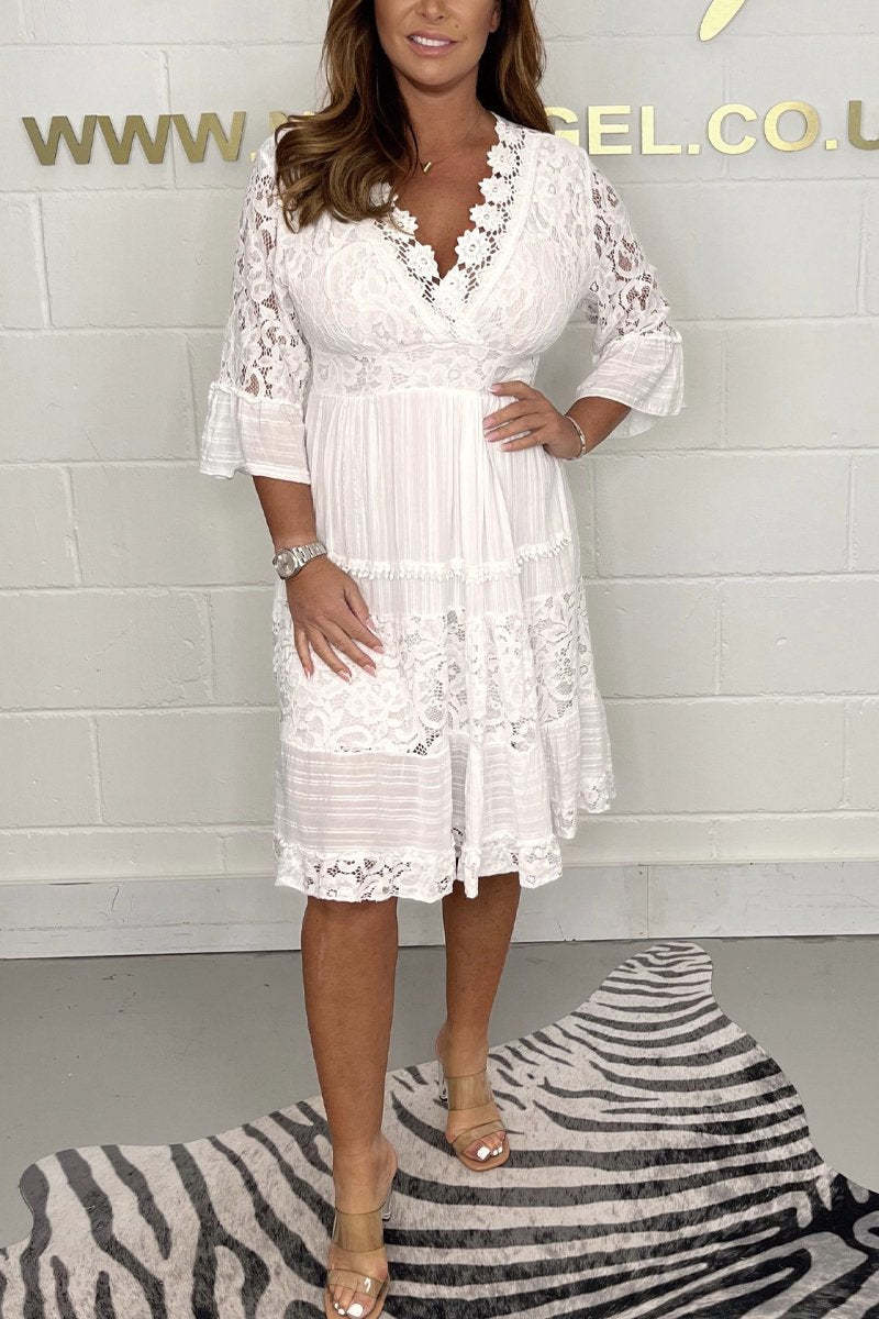 V-neck lace cotton dress